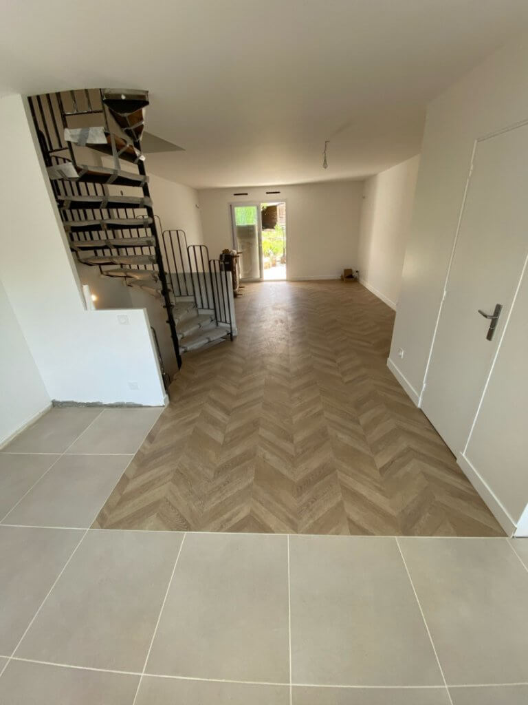 Modifier le sol ou ajouter un revêtement permet de mieux distinguer le salon des autres pièces.